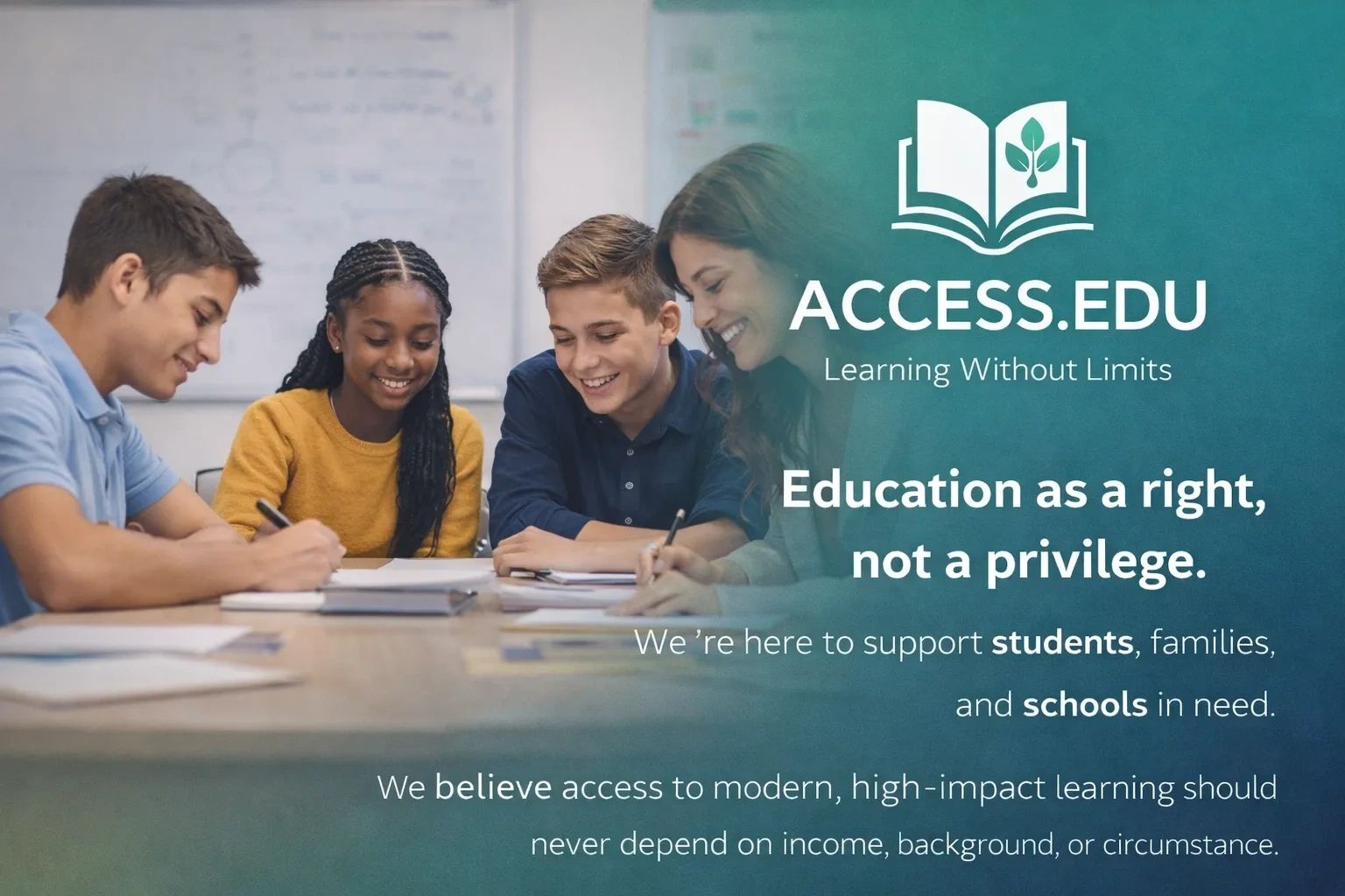 AccessEDU is a UK-based Community Interest Company (CIC) created to close the opportunity gap in education and bring modern, high-impact learning to students and families who need it most.